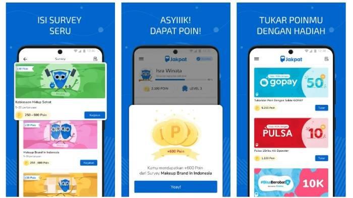 Cara mendapatkan uangnya puns angat gapang. Kamu bisa mengisi survey untuk mendapatkan poin, lalu ditukarkan dengan saldo DANA. Aplikasi ini bahkan tak hanya menawarkan uang. Namun juga bisa hadiah pulsa, tiket film hingga voucher belanja.
