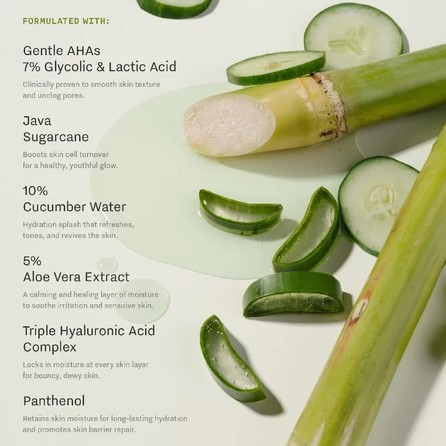 Kandungan tersebut akan membantu eksfoliasi kulit, menstimulasi pembaharuan kulit dan memberikan hidrasi dalam waktu yang lama.