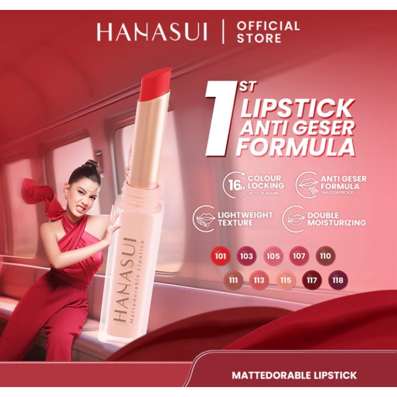 Kalau kamu cari lipstik hanasui untuk bibir hitam dan kering. Maka, wajib cobain Hanasui Mattedorable Lipstick.